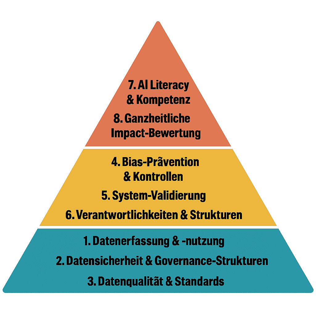 Beginnt man mit der Arbeit an einer rechtssicheren, verantwortungsvollen und strategischen Implementierung von KI-Lösungen im Unternehmen ist es angeraten zuerst